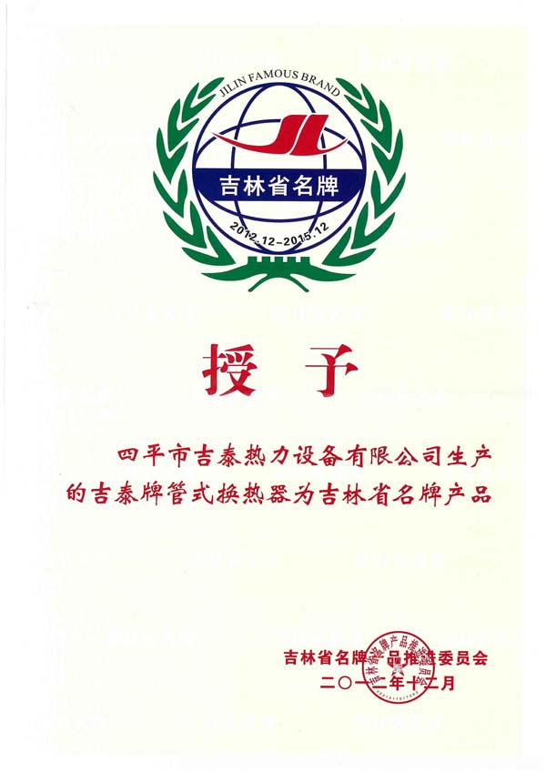 四平市吉泰熱力設(shè)備有限公司始建于1996年,坐落在全國衛(wèi)生園林城市,擁有“中國換熱器基地”美譽(yù)的四平市,公司擁有雄厚的技術(shù)力量和人才優(yōu)勢(shì),國內(nèi)生產(chǎn)設(shè)備,完善的檢測(cè)手段,是吉林省集設(shè)計(jì)、開發(fā)、生產(chǎn)經(jīng)營(yíng)于一體的換熱設(shè)備生產(chǎn)企業(yè)。